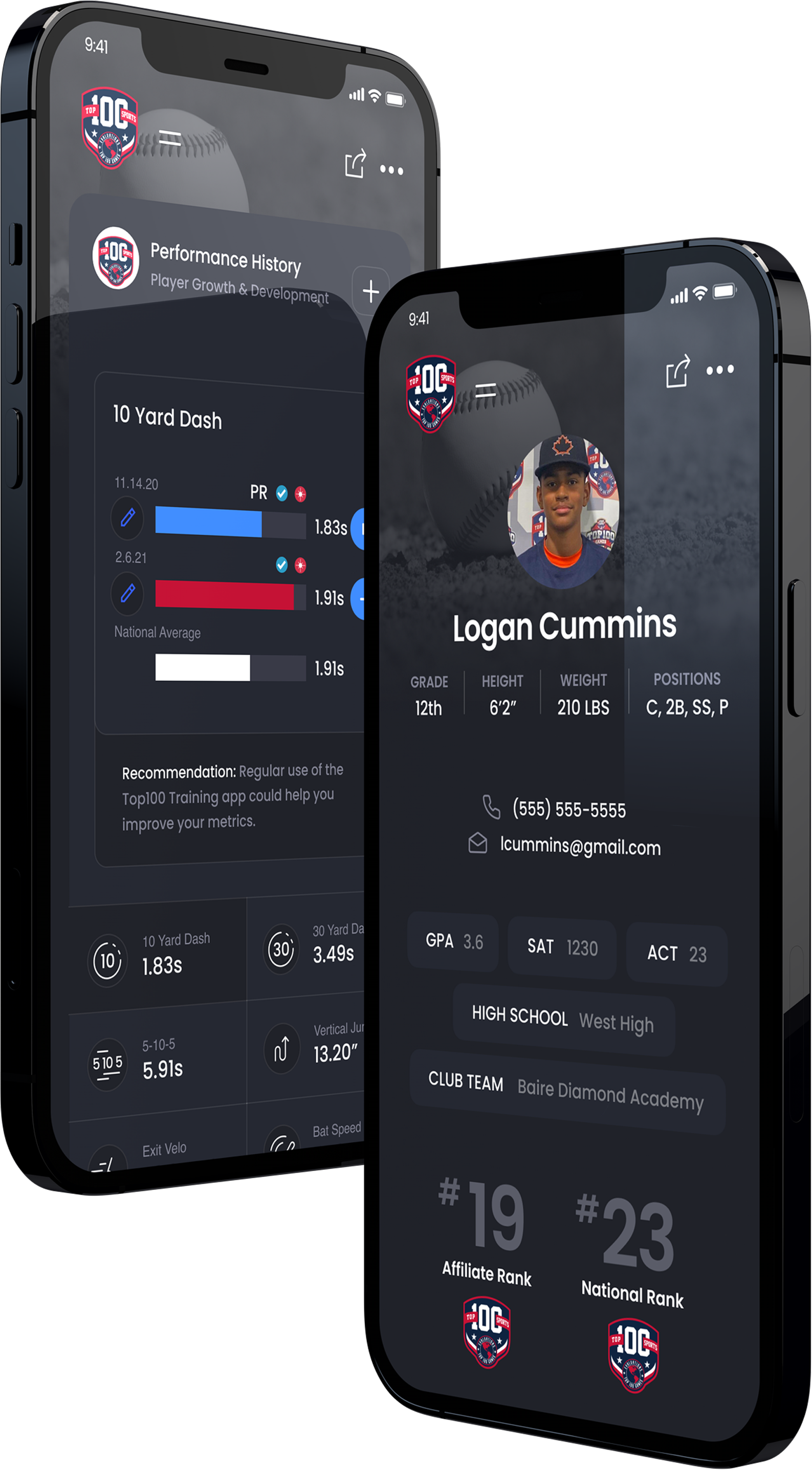 Once we capture your metrics to see where you rank in the Top 100, our Peformance Training app can spefically target specific areas for improvement.